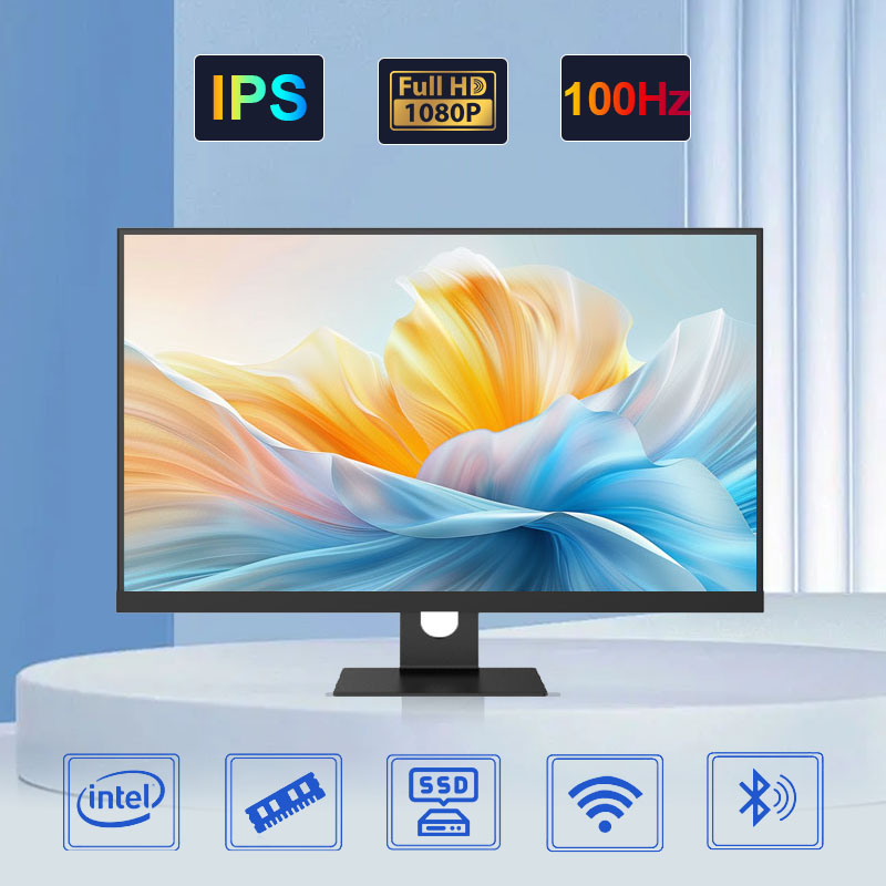 Manufactured by Tenfly, the 27″ All-in-One PC blends performance and practicality with a Full HD VA display and Intel® Core™ i3/i5/i7 support. Built for flexibility, it offers dual DDR4 slots, 2.5″ & M.2 SSD compatibility, plus an aluminum stand with handle, quick-release design, efficient cooling, and VESA mount support.