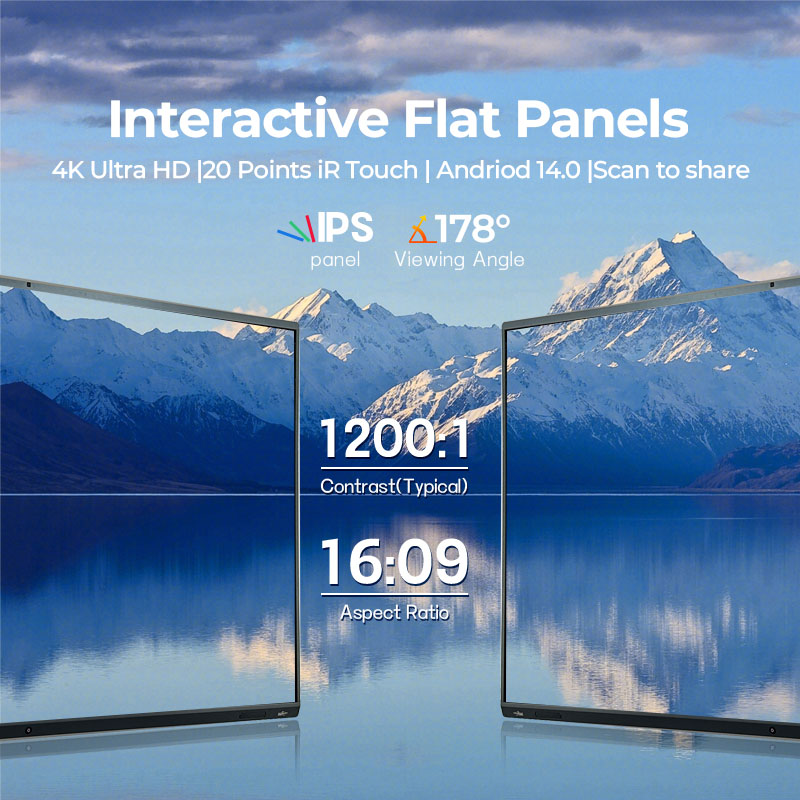 The A-Series 75-inch Infrared led interactive display is a versatile large-format smart display built for advanced teaching, conferencing, and collaborative presentations. Powered by Android 14 with an octa-core processor, it integrates whiteboard, multi-device sharing, annotation, and optional conferencing hardware in one streamlined platform. Its premium metal design, high-precision IR touch, and rich connectivity make it an adaptable solution for classrooms, meeting rooms, and commercial display environments.