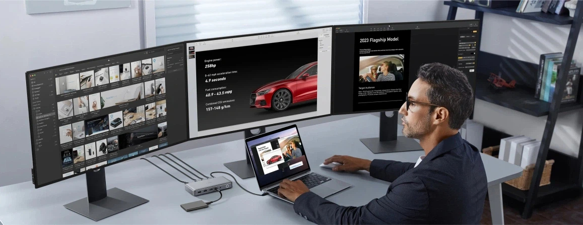Experience a vast visual canvas that enhances productivity for multi-document work and brings movies and videos to life with immersive depth.
